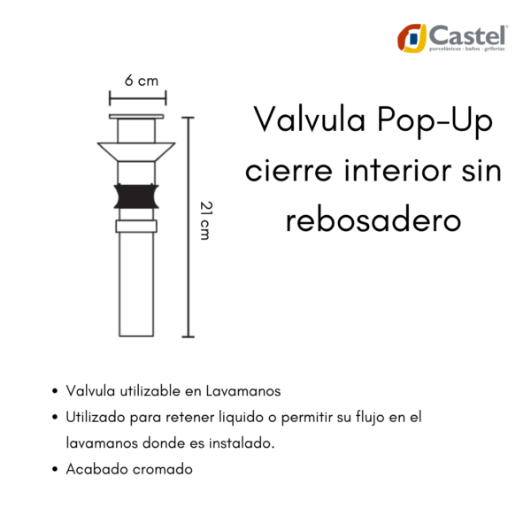 Válvula Cierre Interno sin Rebosadero, marca Castel.